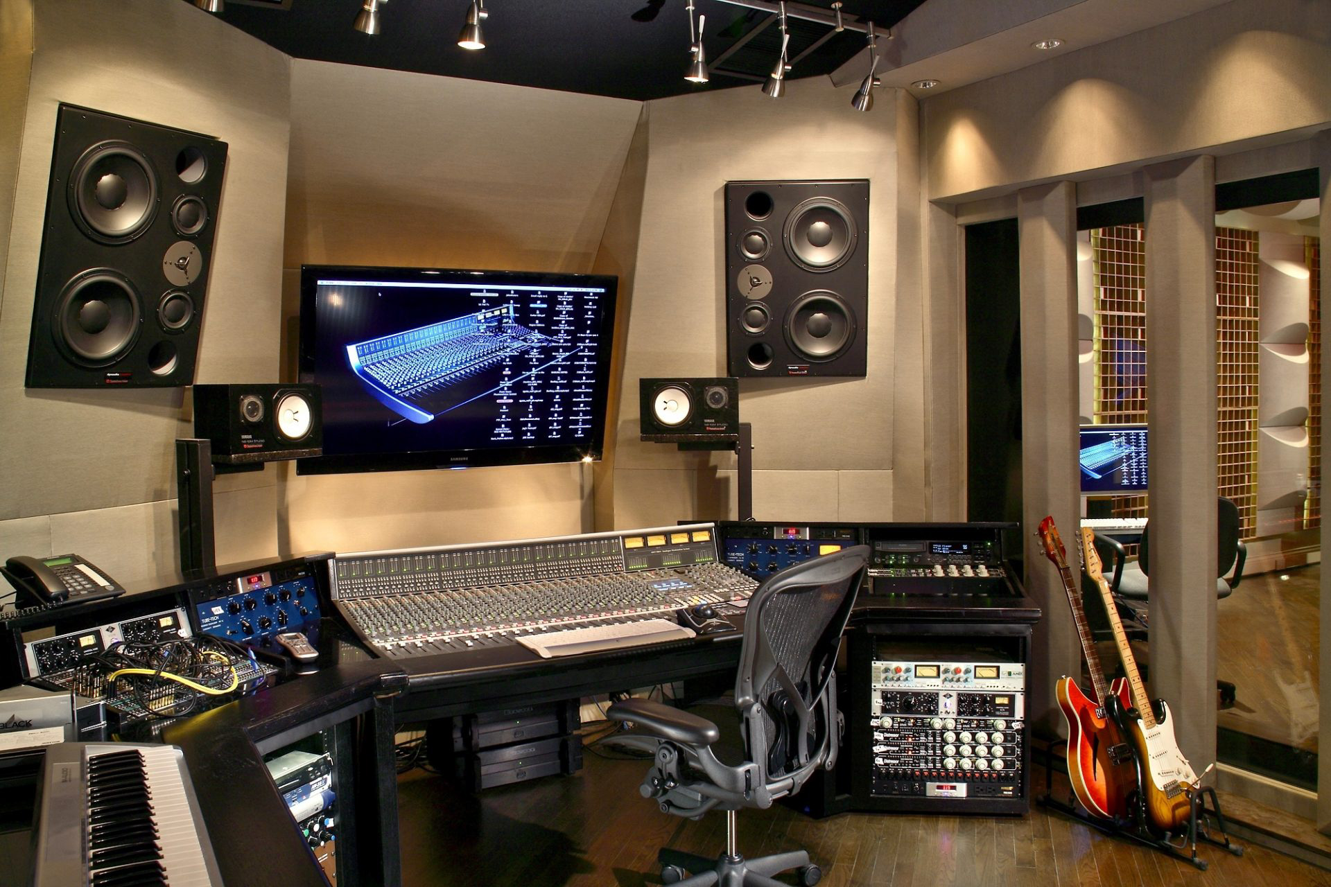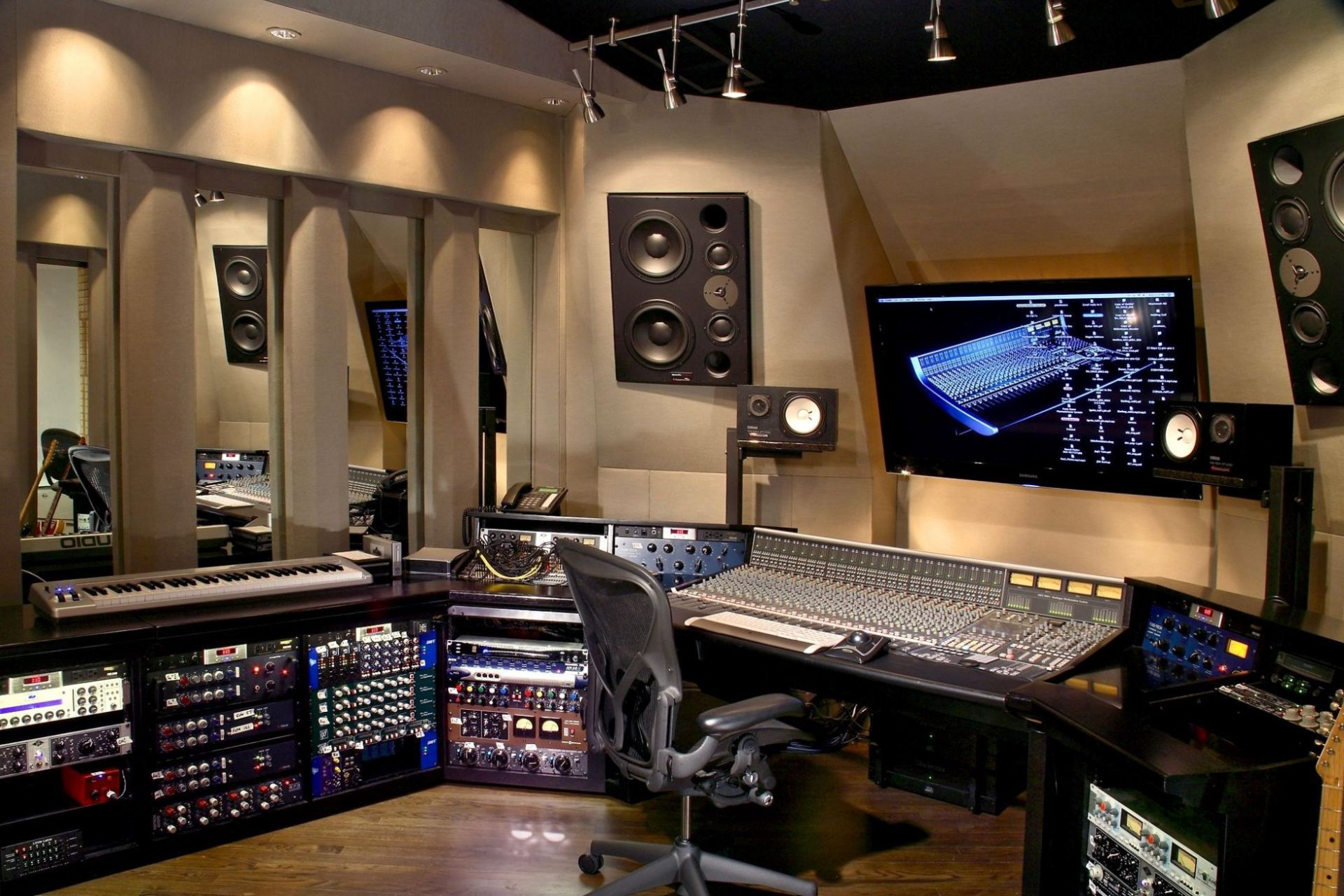 Obviously we all do this all the time if we’re moving from studio to studio. We’ll have our little spots on the console meter bridge for monitor placement and set their cant by eye. If we’re lucky, it might sound OK but again, without a little bit of science, that decision may be based on some unknown appealing curve that may very well be lying to us and is different in every room. Some of us may even note that we’ve been mixing this way for years and haven’t had any problems and made some great sounding records so what’s the big deal? It’s interesting, that with some very notable exceptions, the records that we all deemed great sounding sonically at one time in the past, don’t really hold up to what we consider state of the art today. Could part of it be that the speakers are better? As my colleague, the great George Massenburg, once said when presented with the argument that there are a lot of bad sounding records out there that are selling millions and the record labels don’t seem to care anymore, his heartfelt reply was ” We do it for ourselves…we do it for ourselves”. If any of us feel that we’ve reached the pinnacle of our abilities and couldn’t possibly improve, then this information can be ignored. But for most of us, wouldn’t it be fascinating and at the very least enjoyable, to see how using a really accurate monitoring system on a regular basis in our home studios might influence our work. In a perfect world, all studios would have a recallable preset for a variety of near-field/subwoofer monitoring systems that could accommodate engineer’s preferences. We have the technology folks. Think how a savvy studio could market this as a perk to their clients.