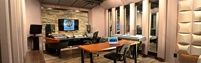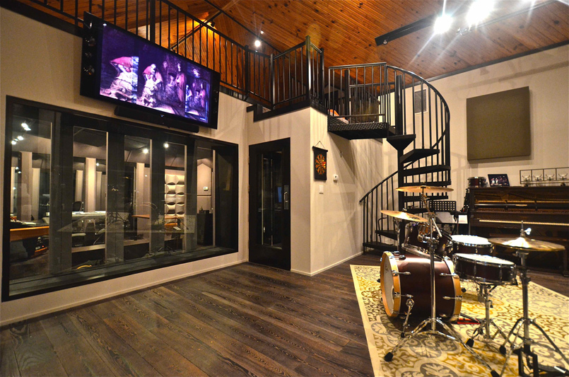 The second studio that Carl Tatz designed for engineer/producer Derek West, Fly by West, is built into a former boathouse. The CTD MixRoom includes Tatz’s Signature Series acoustic modules by Auralex, and Dynaudio BM6A Professional monitoring augmented by the designer’s proprietary PhantomFocus System. The adjacent tracking room has 20-foot ceilings and includes a multi-use loft.