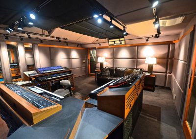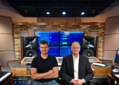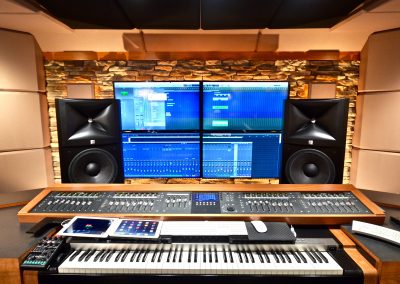 Carl Tatz of Carl Tatz Design designed The News Room, which is now equipped with his CTD MixRoom technology, including a PhantomFocus monitoring system and Carl Tatz Signature Series acoustic modules by Auralex. Supplementing the PhantomFocus speakers are Dynaudio M1s powered by Bryston 7B-SST2 mono-block amps. The studio also contains a variety of sample libraries, Avid Artist control surface and numerous synths.