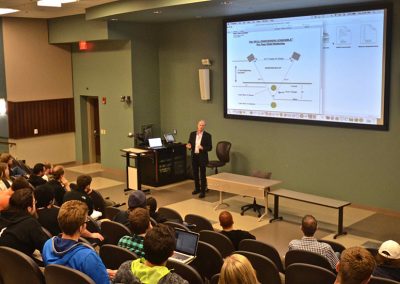 Why This Matters: MTSU has one of the largest recording programs in the world with a very vital AES Student Chapter. The school recently installed seven Carl Tatz Design (CTD) PhantomFocus™ monitoring systems and the lecture gave the students the opportunity to go behind the scenes and learn what made the monitors that they had been mixing and tracking on sound so outstanding.
