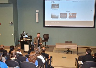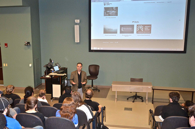 AES President John Krivit spoke to MTSU students about professional opportunities in the audio industry and strategies for matriculating into 21st Century jobs. As he does with his “Hey Audio Student” Facebook group, John chronicled the events and opportunities that are made available to Student Members of the Audio Engineering Society.