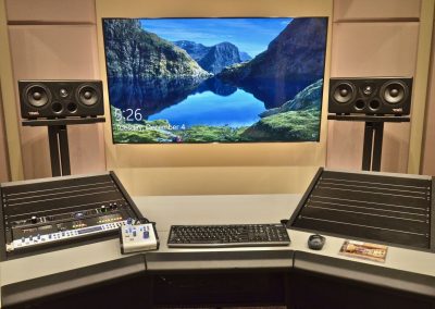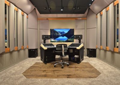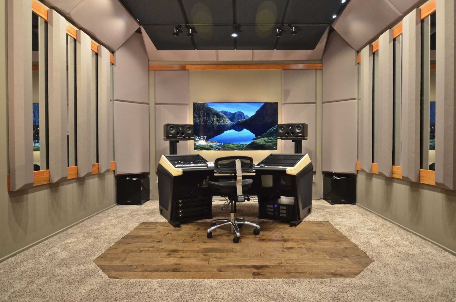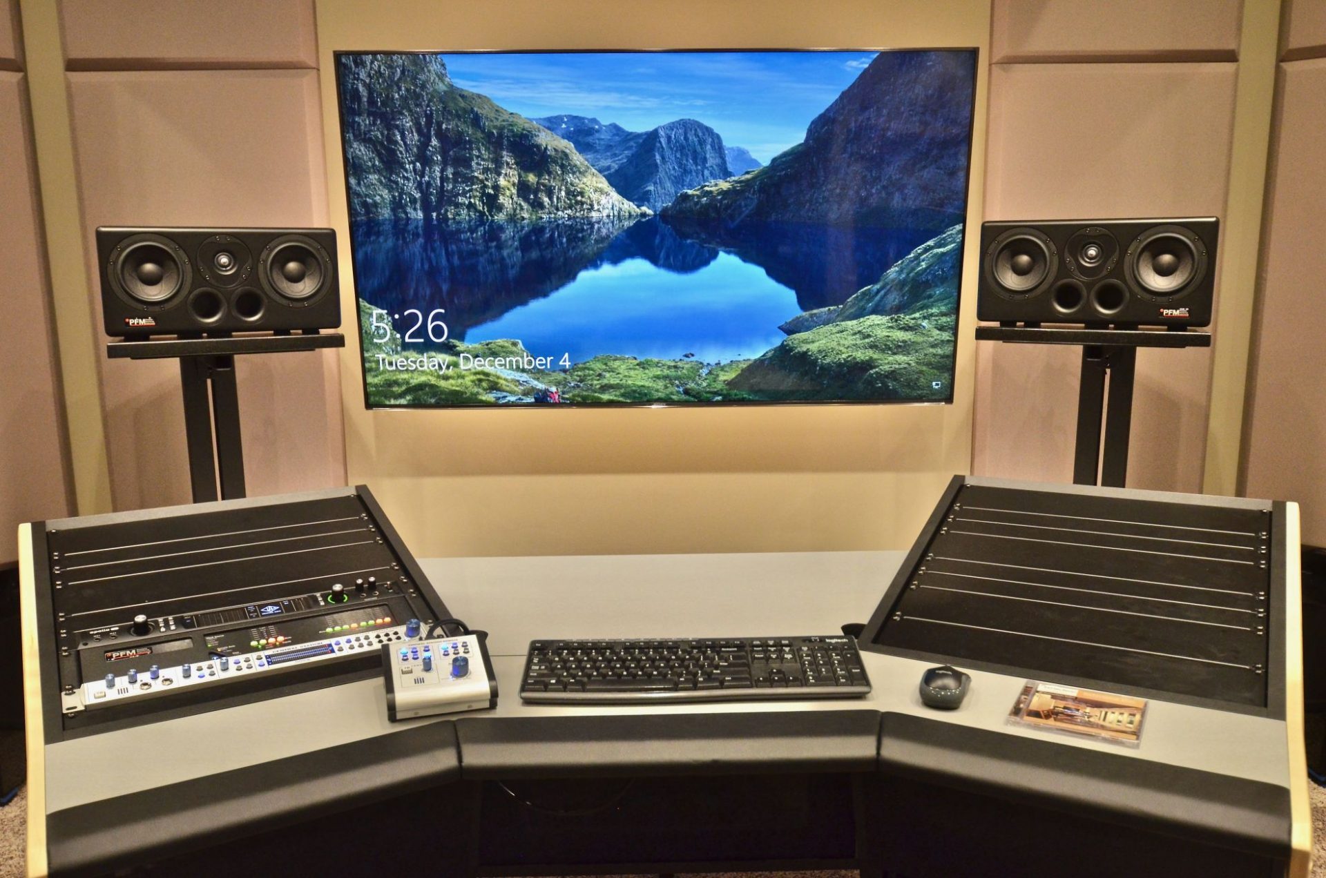 A simple but very high-performance custom application of the Carl Tatz Design Signature Series™ Kit by Auralex®. It features a PhantomFocus Edition™ Sterling Modular Plan D Workstation, PhantomFocus PFM UHD-1000 Monitors, PFM ICE Cube-12 Subwoofers, PhantomFocus Monitor Stands by Sound Anchor, and a PhantomFocus Raven Chrome eChair™.