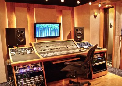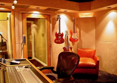 The Panic Room was carefully designed for Joe Don Rooney (guitar player for super group Rascal Flatts) to be a recording refuge. Located on the second story of his home and utilizing a former small bedroom and closet, it is a marvel of function and performance. One of the client’s directives was to isolate the room from the rest of the house – no simple task considering the energy of his 20Hz to 20KHz PhantomFocus System™ and the fact that he wanted to “crank it up” late at night and not bother his wife. CTD built a room within a room using all the latest isolation technology to succeed in this task. Small spaces are one of the areas that CTD excels in and this is a great example of that boast. With a beautiful vocal/amp booth everything seems to be just right and at your fingertips.