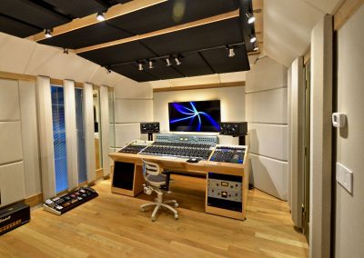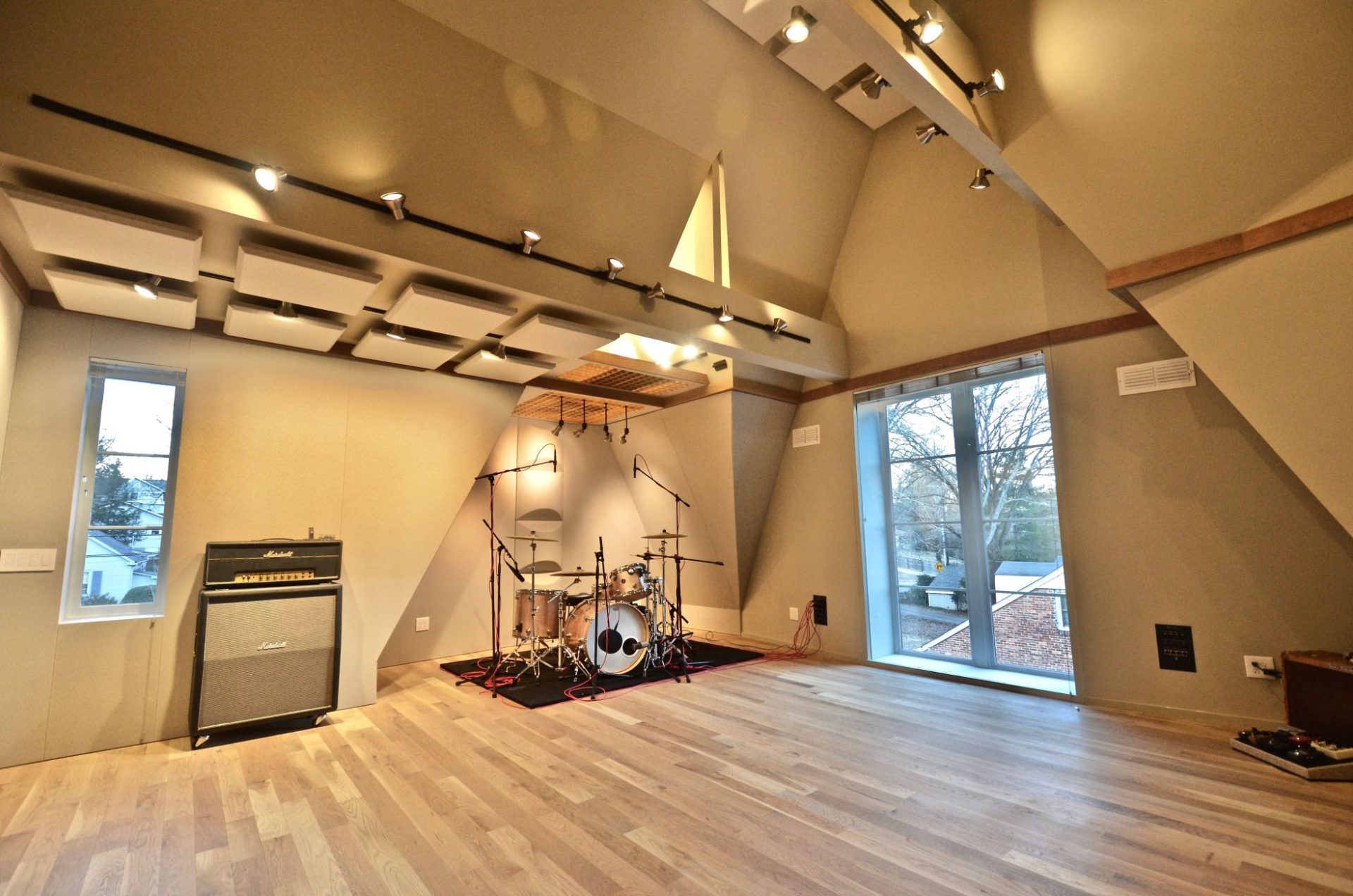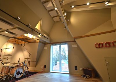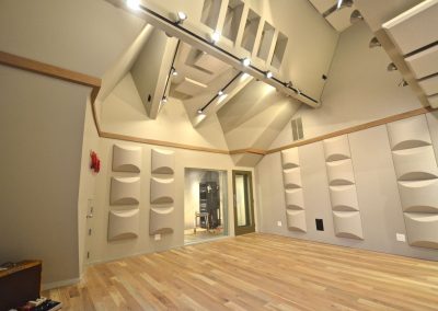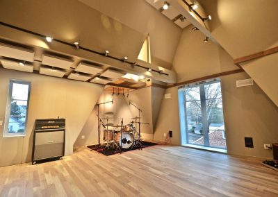A prominent MLB player commissioned CTD to design his personal studio with spectacular results. Soaring 18-foot, five-gabbled ceilings highlight the tracking room complemented with a PhantomFocus™ MixRoom featuring PhantomFocus bi-amped Ultra High Definition Monitors, Tree Audio console, PhantomFocus eChair™ and custom desk by Sound Construction & Supply. Carl Tatz Design Signature Series™ modules by Auralex® were used throughout in a custom application.